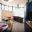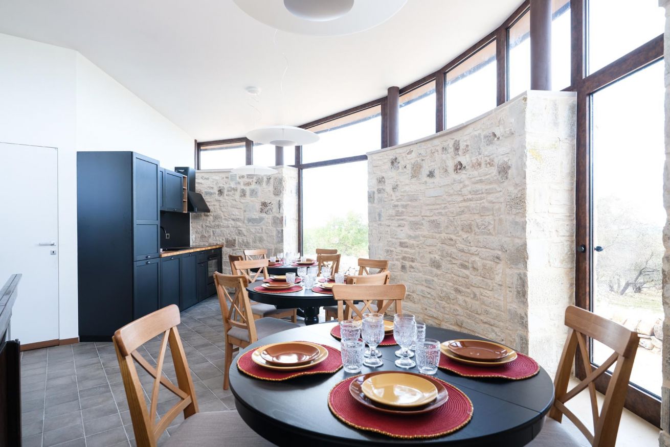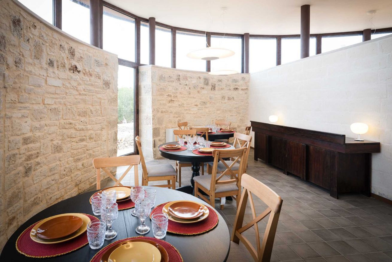 Gli arredi di alta qualità e i dettagli di design, come le opere appese alle pareti ispirate alla fauna della Murgia, richiamano la tradizione locale e la rendono unica. Gli spazi esterni privati, come il terrazzino con tavolo e sedie, permettono di ammirare il paesaggio murgiano e godere della tranquillità della campagna circostante.